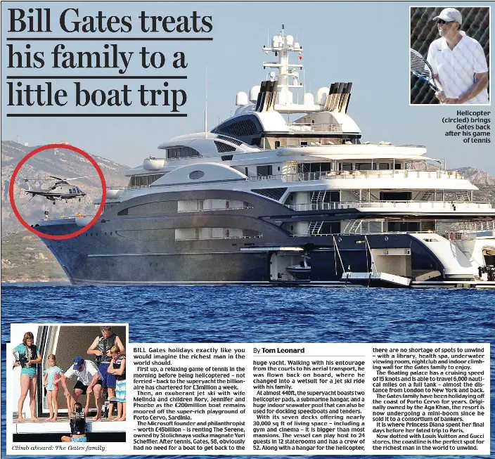 Take a step inside the 440ft superyacht serene microsoft billionaire bill gates rented for his family at the cool price of $2 million per week… with very large indoor saltwater pool, two helicopter landing platforms and storage for a large submarine and tender. Cet sinot, the maker of the sinot aqua yacht, told the bbc that the yacht has not been sold to mr gates and that it had no business relationship with bill gates. How bill gates spends his billions. Superyacht serene, and inset, bill gates. What are the ship's features? Serene, owned by stolichnaya vodka magnet yuri scheffler was delivered in 2011 and has been loosely on the charter market ever since. This yacht offers 200 square metre suite covering the entire third floor. Sinot has since said that this is not the case. In recent days, various articles have appeared in international media, stating that sinot yacht architecture & design sold its concept 'aqua' (presented at the. The pictures are impressive, but is it true? A yacht for $500 million? Most luxurious private submarines in the world. Even though the superyacht will be environmentally friendly, it also sounds pretty luxurious.
